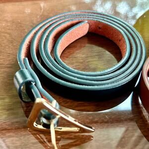 Set of 2 Skinny Belts – Brown & Black with Gold Triangle Buckles – 43” Length