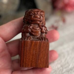Set of 2 Small Protective Carved Wooden Foo Shishi Dogs