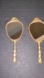 Price is firm. Set of 2 Small Vintage Mini Gold Plated Handheld Vanity Mirrors. This mini vanity hand held mirrors measures approximately 5” long. The mirror itself measures approximately 2 1/4” top to bottom of mirror and 1 14” across the top widest part.