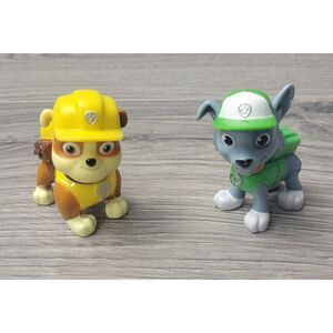 For sale is this Set of 2 Spin Master Paw Patrol 1.5" Mini Figures Rubble (Yellow) Rocky (Green) Pre-Loved with average wear. Some paint missing and smudges present. Ideal for play or display. Sold as-is. Please review photos for condition. Comes from a Smoke-Free Shop.