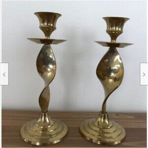 Set of 2 Spiral Base Brass Taper Candle Holders Candlesticks 7