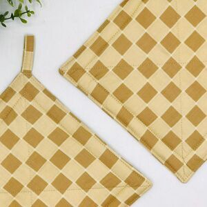 Set of 2 Square Potholders, Neutral Checkers, 2 Piece Baking Gift Set 7x7 Inches