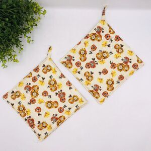 A set of 2 potholders is a delightful print for your kitchen! These Square potholders are 100% cotton with Wrap n Zap and Insul-brite batting inside. These are a sturdy, attractive addition to your kitchen. Potholders measure approximately 7x7 square.