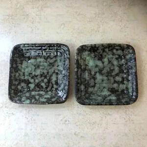 Set of 2 Square Spotted Ceramic Dish,Vintage Browns And Greens