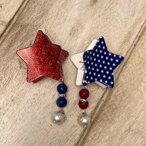 Set of 2 - Star Patriotic Hair Claw Clips with Dangles