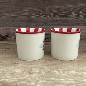 Set of 2 Starbucks Holiday 2007 Joy Mugs Christmas Peppermint Candy Striped 14oz