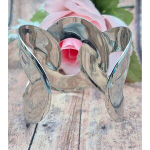 Elevate your style with this set of two statement metal cuff bracelets, featuring one in silver tone and one in gold tone. Perfect for adding a bold touch to any outfit.