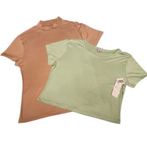 Both are super stretchy. one is mock neck, and the other is Cropped