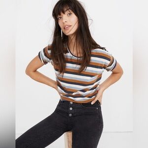Madewell Lo-Fi Shrunken Tee Cotton T Shirt In Lennie Stripe (MSRP $32):