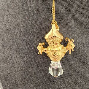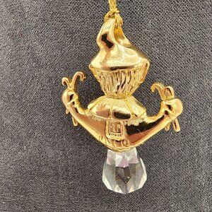Set of 2 Swarovski Lead Crystal Golden Elf Holiday Christmas Ornament With Boxes
