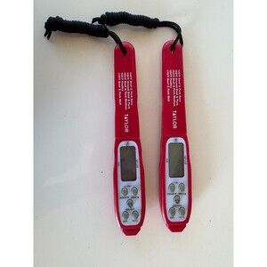 This listing is for a set of two Taylor Digital Waterproof Meat Thermometers. Perfect for grilling, smoking, roasting, or everyday cooking, these thermometers give quick and accurate temperature readings with a bright backlight for easy visibility.