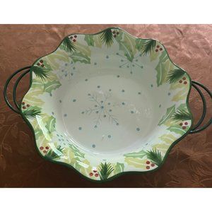 Set of 2 Temp-Tations HOMETOWN CHRISTMAS HOLLY 9" & 11” ROUND BAKER W/RACKS NEW