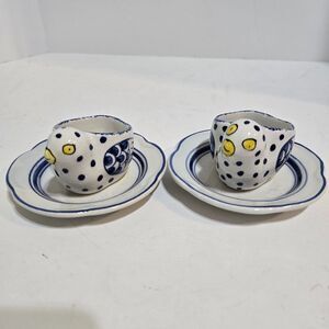 Set of 2 Tiffany & Co. Portugal Egg Cup Blue Polka Dot Chicken Hen hand painted