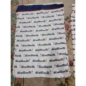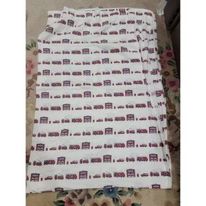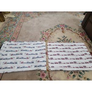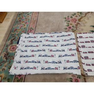 Set of 2 Twin Flat Sheets Colorful Trains Red Blue Firetrucks White Fabric