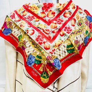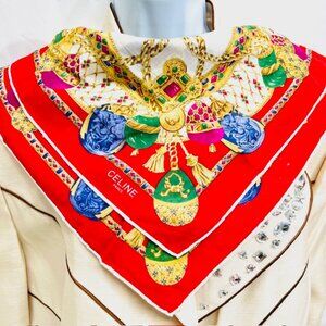 1. Celene Paris Mini Scarf Unsued 22" x22", color red gold diamond rubbies gold chain designs