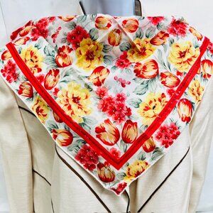 1. Oscar De La Renta Mini Scarf 18" x 18" " , cotton made, pink red orange floral