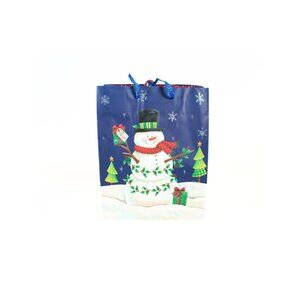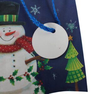 Add a festive touch to your holiday crafts or gift wrapping with this charming set of two previously used Christmas gift bags. One features Santa Claus with a "Merry Christmas" message in classic red hues, and the other showcases a snowman with glittery snow details on a deep blue background.