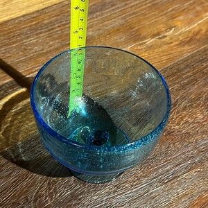 Pontil mark on the bottom. Each dish is slightly different with no two exactly alike due to the freehand blowing of the glass. There are some tiny bubbles throughout the bowls.