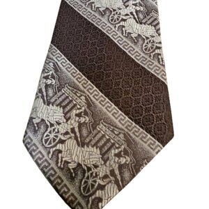 Brown and Cream Necktie - Good used condition, Great detail of Roman soldiers on horse-drawn chariots.