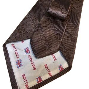 Brown Brittania Necktie - Good used condition, commensurate with age. Some slight staining on the back side and missing tag. See images for detail. Poly silk blend