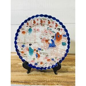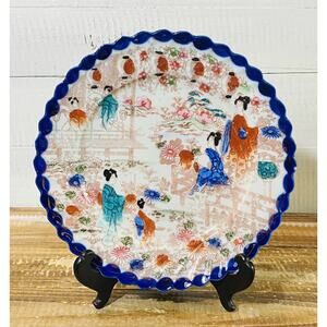 Vintage Antique Hand Painted Geisha Girls Scalloped Nippon Plates
