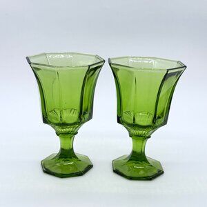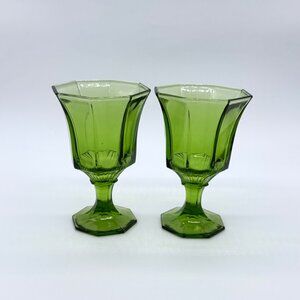 Set of 2 Vintage Avacado Independence Glass Co. MCM Wine Glasses 5.75" tall