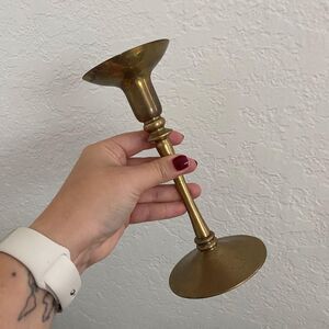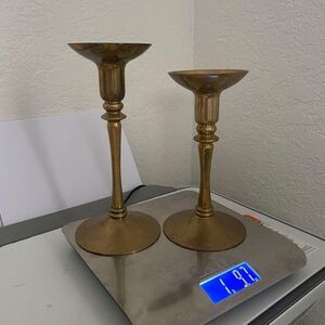 Set of 2 Vintage Brass Gold Candle Holders 7" and 8" height