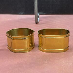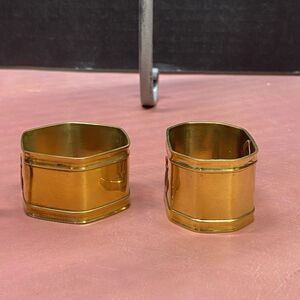 This product is a set of 2 vintage brass napkin rings featuring a raised copper anchor design, perfect for adding a nautical touch to your table setting. The oval-shaped rings are made of brass and have a gold color, making them suitable for all occasions. Hand wash only to maintain their original charm. These unique napkin rings are a collectible item that will enhance your kitchen decor with a touch of marine style. Made in India, they are a stylish addition to any nautical-themed home.
