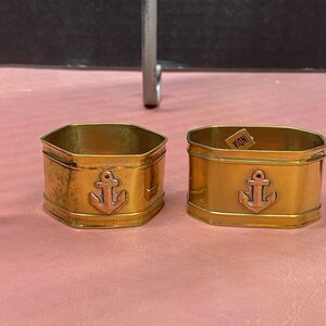 Set of 2 Vintage Brass Napkin Rings Raised Copper Anchor Nautical Beach Decor
