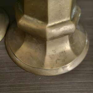 This listing is for 2 vintage brass pillar candle holders. These holders are in good condition and have aged beautifully. Details can be viewed in zoomed-in photographs. These act as great statement decor pieces and the perfect touch to any decor style