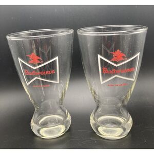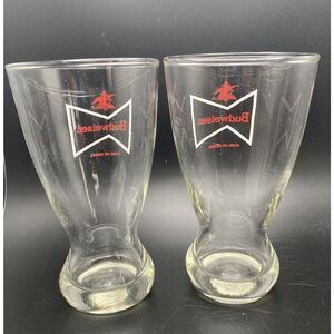 Set of 2 Vintage Budweiser 6" Clear Glass Pilsner Bowtie Logo Beer Glasses