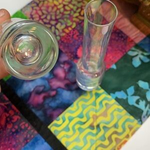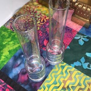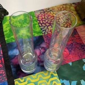 6 inches tall , 1 inch opening at the top, bottom is 1.5 inches across