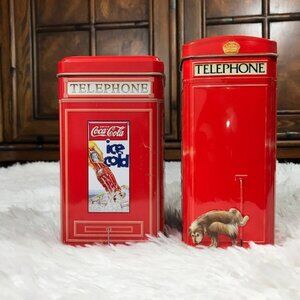 Set of 2 Vintage Coca-Cola Phone Booth Tin + Churchill's Phone Kiosk Money Box