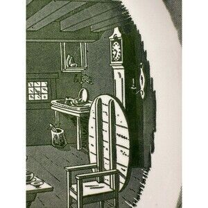 This set of 2 vintage Colonial Homestead Royal Green Handled Plates is a charming addition to any kitchen or dining room. The 11-inch ceramic platters feature a fireplace and homestead scene in green and white, adding a decorative touch to your table setting. With a glossy finish and a round shape, these plates are perfect for any occasion. Please note- these are pre-owned and have some signs of wear. There are some faded spots on one as well as some minor scratching. Aside from that there are no cracks or chips. Please make sure to look at pics closely, thanks for looking!