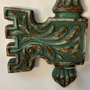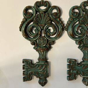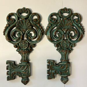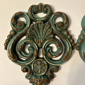 Some wear but overall good vintage condition. Set of 2 wall hanging plaques. Green with gold accents.