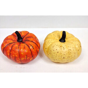 Set of 2 Vintage Decorative Pumpkins Small Foam Plastic Autumn Fall Decoration