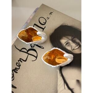 Super rare! Set of 2 Vintage Fitz and Floyd Porcelain Swans with Gold Interior - excellent condition!