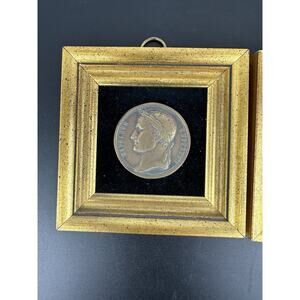 Framing: Both medallions are housed in gilt-bronze frames with a black velvet backing, suggesting they were intended for display as decorative art or historical artifacts.