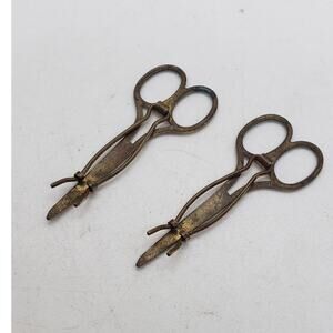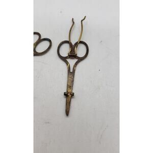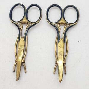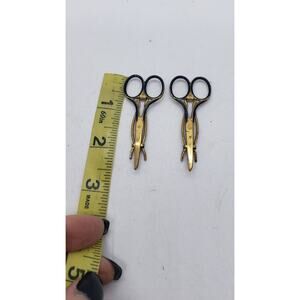 Set of 2 Vintage Gold Scissor Hair Barrette Scarf Clip Hair Sewing Collector