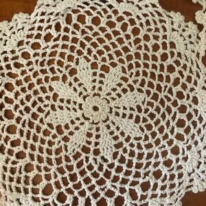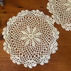 Set of 2 Vintage Hand Crochet Doilies White Round Scalloped Edge