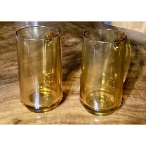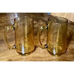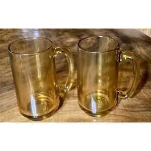 Set of 2 Vintage Hazel Atlas Amber Glasses Beer Mug Stein