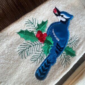 Set of 2 Vintage Holiday Christmas Embroidered Bird Guest Towel 16" X 11".
