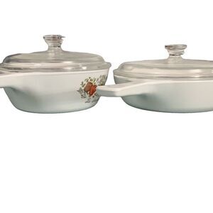 Set of 2 Vintage La Sauge 1 pint and 6.5”Corningware baking dishes Cover handles