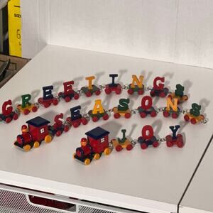 Set of 2 Vintage Miniature Wooden Letter Trains “SEASONS GREETINGS” + “JOY”