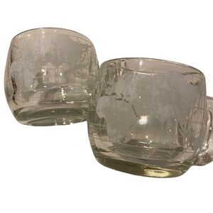 Set of 2 Vintage Nestle Nescafe World Map Globe Etched Glasses Mug Coffee Cups