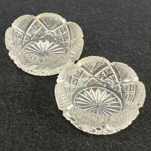 Set of 2 Vintage Open Round Salt Dip/Salt Cellars Fan Pineapple Shape Glass