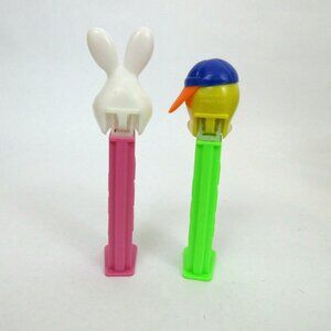 Set of 2 Vintage Pez Candy Dispensers Easter Bunny Warner Bro Tweety Bird Footed