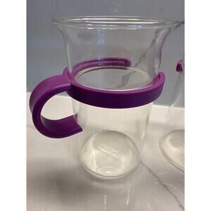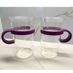 Set of 2 Vintage Purple French Press Bistro Coffee Mugs Bodum Glass Round Handle