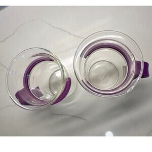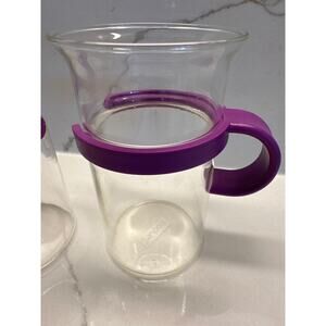 Set of 2 Vintage Purple French Press Bistro Coffee Mugs by Bodum Clear Glass Round Handles