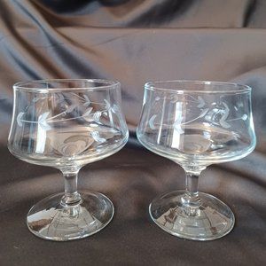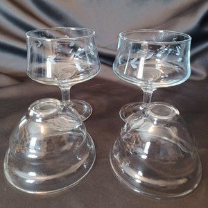 Two Complete Beautiful Seafood Cocktail & Liner Crystal Casuals by Princess House. Hand Blown Glass with etched Heritage pattern. Vintage from the 1980's. Measure 5" x 4".